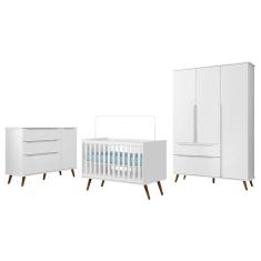 Dormitório Melinda Guarda Roupa, Cômoda com Porta e Berço Retrô - Phoenix Baby