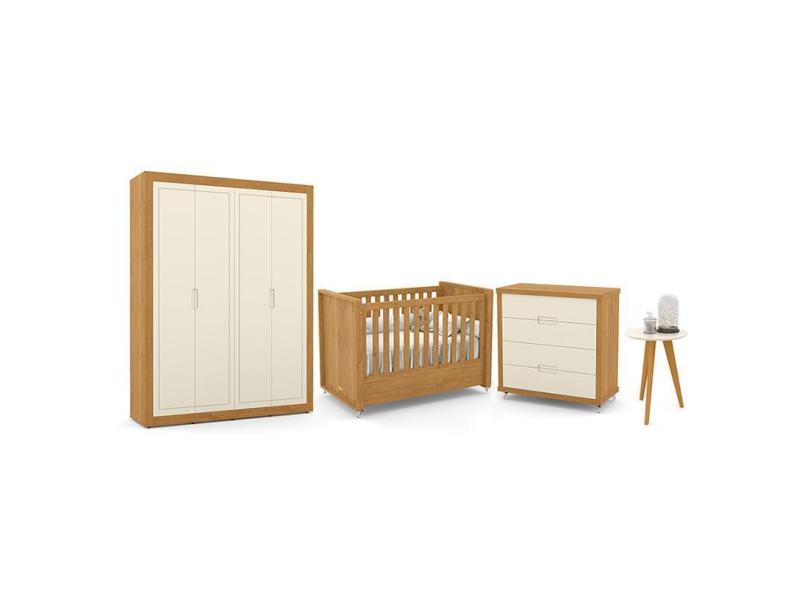 Dormitório Tutto New 4 Portas, Cômoda, Berço Freijó/Off White E Mesinha - Matic Móveis