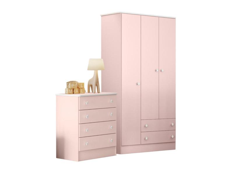 Gaveteiro E Guarda Roupa 3 Portas Saint John Rosa Acetinado