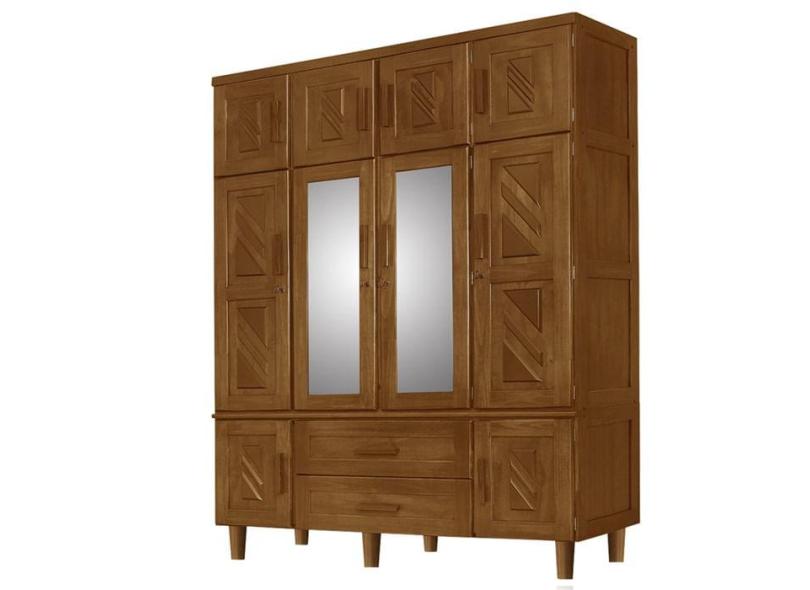 Guarda Roupa 04 Portas Madeira Com Espelho Chicago 104 Castanho At Moveis