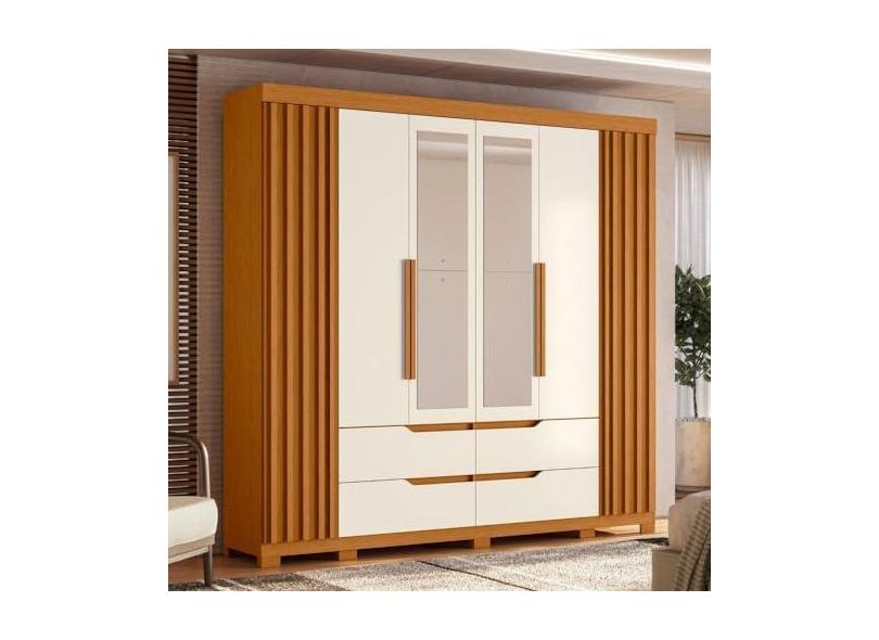 Guarda-roupa 06 Portas e 04 Gavetas com Espelhos Doble Casal Cinamomo/Off White