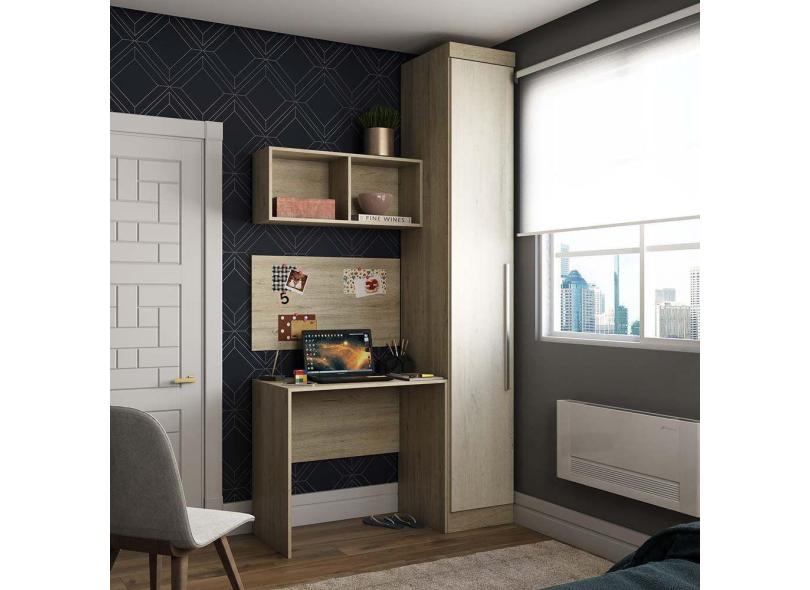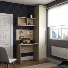 Guarda Roupa 1 Porta 4 Prateleiras C/Escrivaninha Avelã