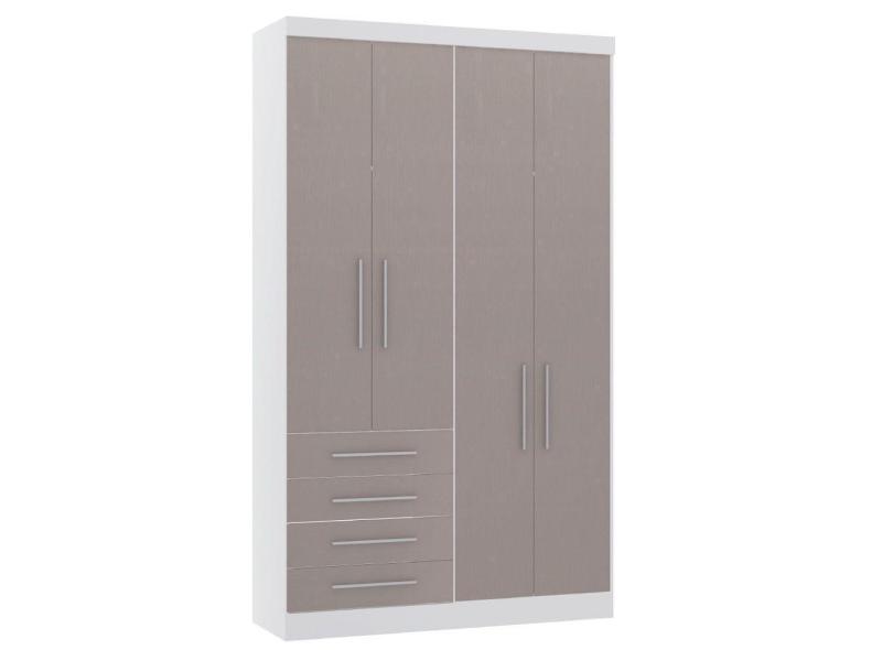 Guarda Roupa 134,5cm 4 Pts E 4 Gavetas Alpes Luciane Móveis Branco Com Cinammon