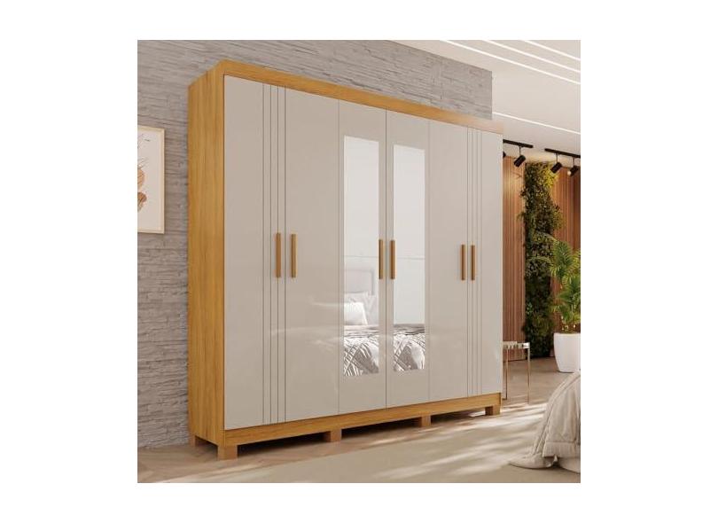 O menor preço encontrado no Brasil para Guarda-roupa 2 Gavetas 6 Portas com Espelho com Pés Lisboa Cinamomo/Off White atualmente é R$ 1.299,98.