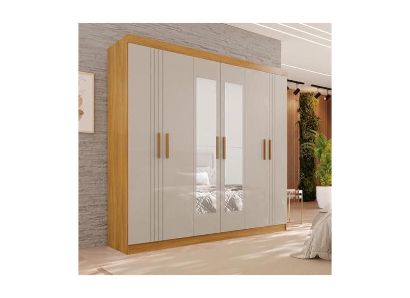 O menor preço encontrado no Brasil para Guarda-roupa 2 Gavetas 6 Portas com Espelho Lisboa Cinamomo/Off White atualmente é R$ 1.234,01.