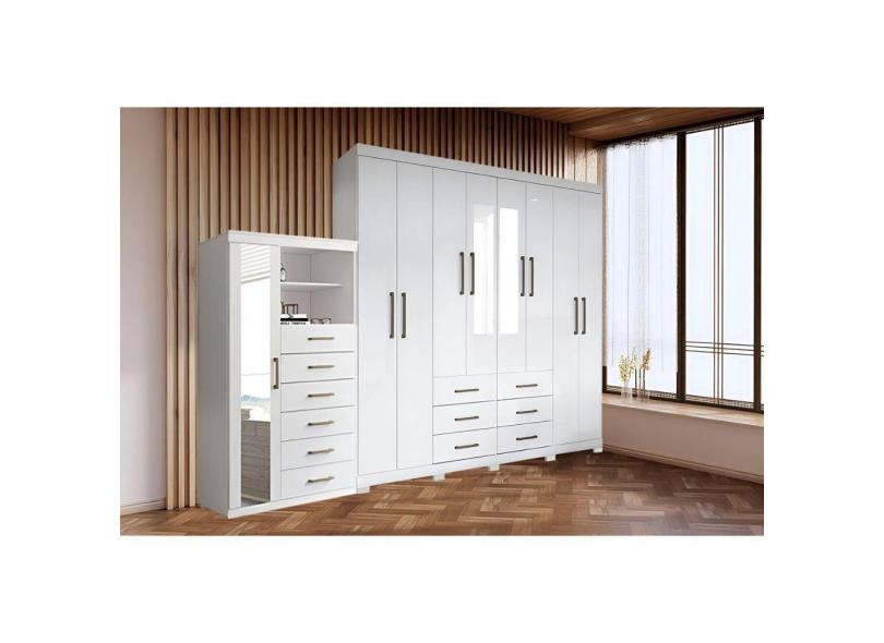 Guarda Roupa 2 Peças 1 Guarda Roupa + 1 Cômoda QC141 Branco Santos Andirá