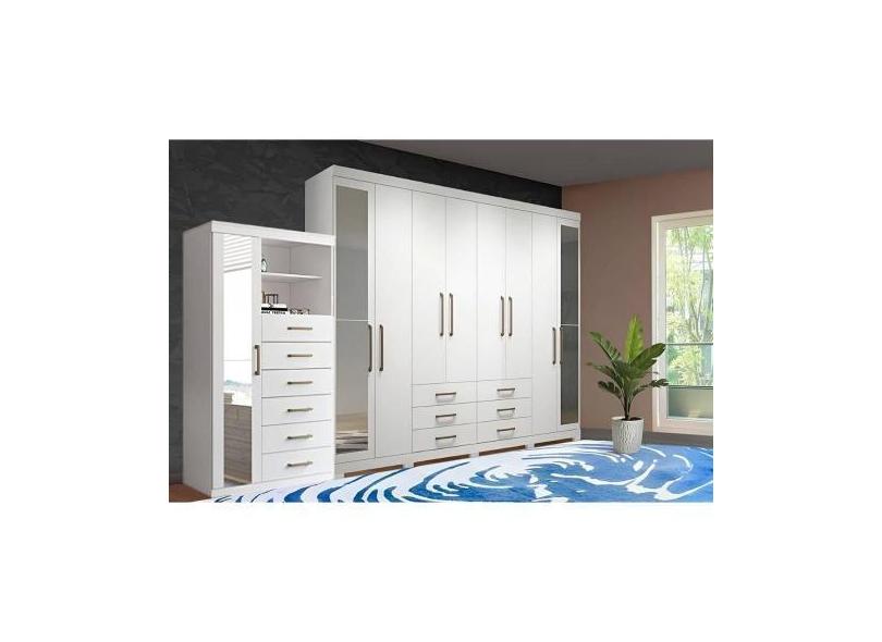 Guarda Roupa 2 Peças (1GuardaRoupa+1Cômoda) QC129 Branco - Santos Andi