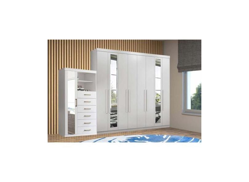 Guarda Roupa 2 Peças (1GuardaRoupa+1Cômoda) QC143 Branco - Santos Andi