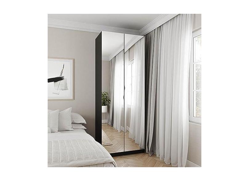 Guarda Roupa 2 Portas com Espelho Cabideiro 2 Gavetas Hera Cabecasa Madeiramadeira Preto