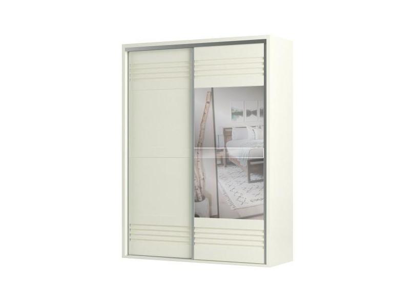 Guarda-Roupa 2 Portas de Correr 2 Gavetas Espelhado Ripado Off White -
