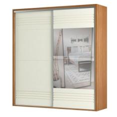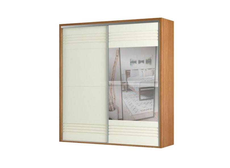 Guarda-Roupa 2 Portas De Correr 7 Prateleiras Espelhado Ripado Freijó/