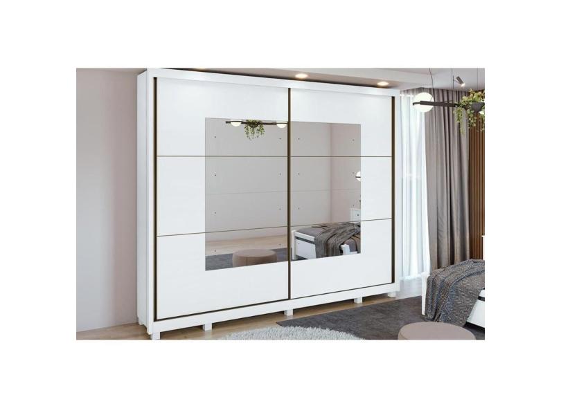 Guarda Roupa 2 Portas de Correr c/ Espelho e 6 Gavetas c/ Pés Toronto Branco - Lopas