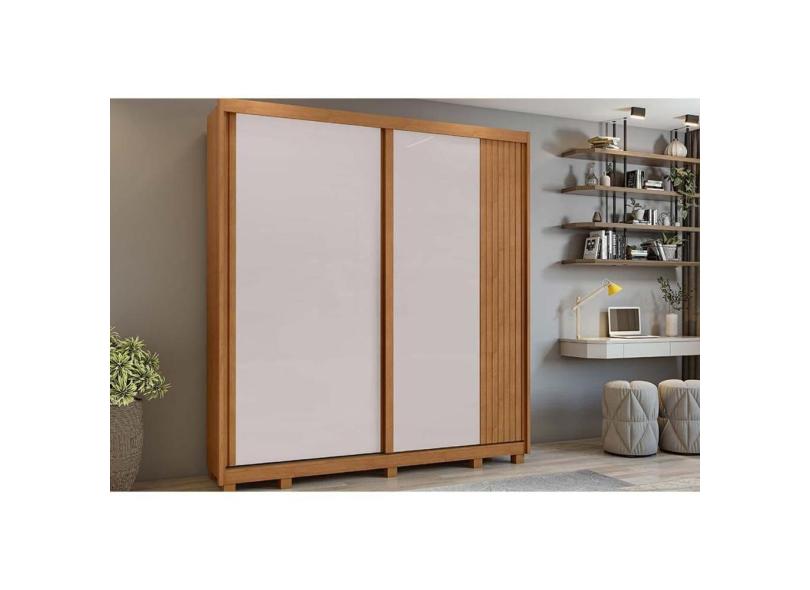 Guarda Roupa 2 Portas de Correr e 4 Gavetas c/ Pés Velaris Amendoa/Off White - Lopas