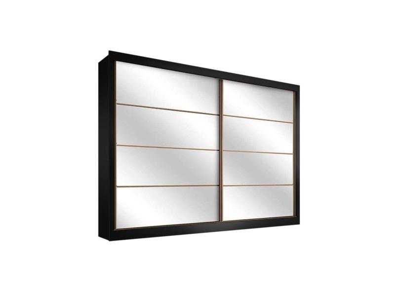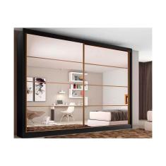 Guarda Roupa 2 Portas De Correr E 6 Gavetas C Espelho Sevilha Preto Branco Acetinado Europa