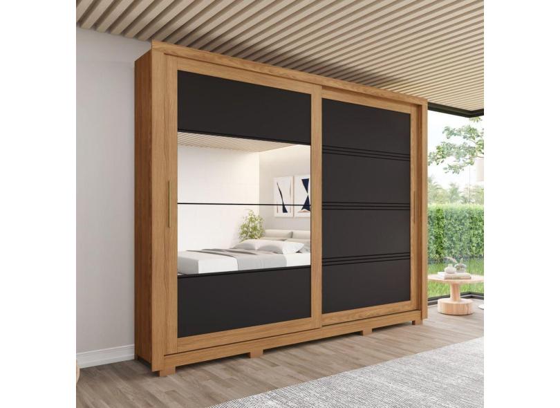 Guarda-roupa 2 Portas Deslizantes 4 Gavetas com Espelho Medelín Marrom/Preto HP