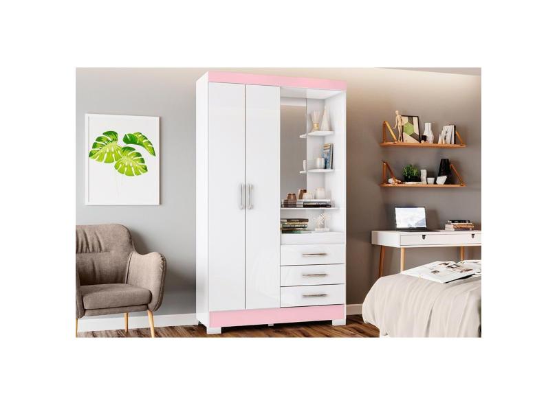 Guarda Roupa 2 Portas E 3 Gavetas C Espelho Briz B64 Branco Rosa Henn