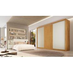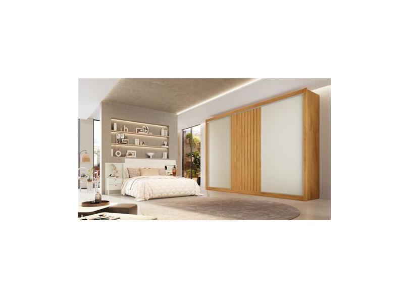 Guarda Roupa 3 Portas 1 Ripada 100% Mdf Vitória Peroba Off White - Móv