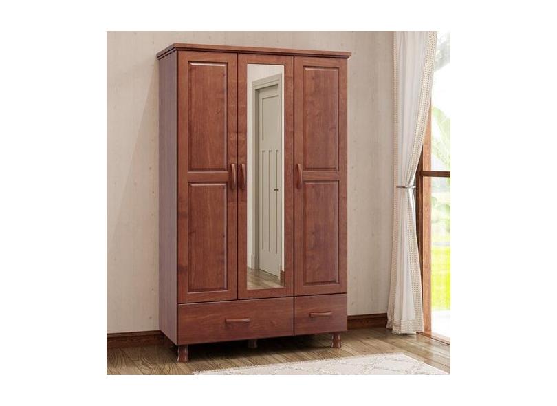 Guarda Roupa 3 Portas 2 Gavetas Com Espelho Linha Bronze Madeira Maciç