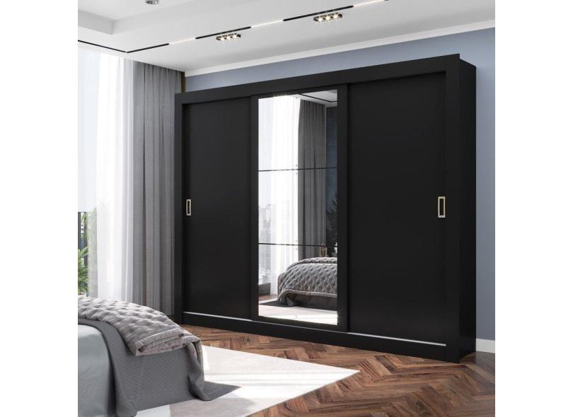 Guarda Roupa 3 Portas 4 Gavetas Com Espelho Serenity Yescasa Preto