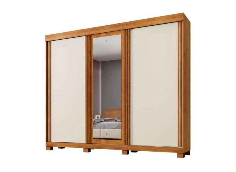 Guarda Roupa 3 Portas c- Espelho Ripadas 6 Gavetas Siena - Benetil Cor: cinamomo - Off