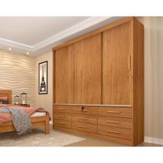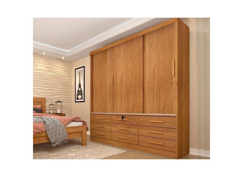 Guarda Roupa 3 Portas Chicago C- De Correr E 9 Gavetas Cinamomo - Tcil Móveis