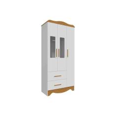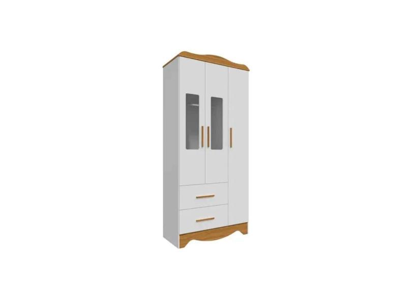 Guarda Roupa 3 Portas Clara c/ e 2 Gavetas Branco/Amendoa - Peroba