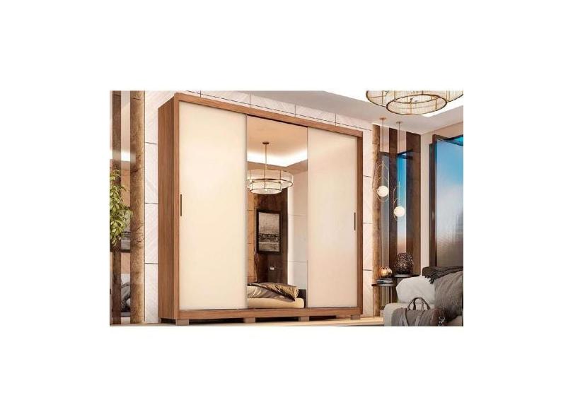 Guarda Roupa 3 Portas de Correr (1 c/ Espelho) e 2 Gavetas c/ Pés Dali