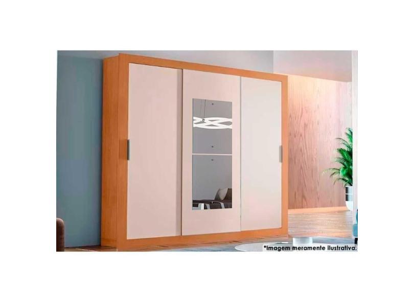 Guarda Roupa 3 Portas de Correr (1 c/ Espelho) e 4 Gavetas Veneza Premium Naturale/Off White - Rufato
