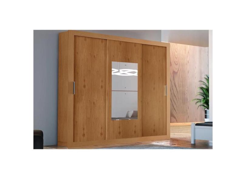 Guarda Roupa 3 Portas de Correr (1 c/ Espelho) e 4 Gavetas Veneza Premium Naturalle/Ripado 3D - Rufato
