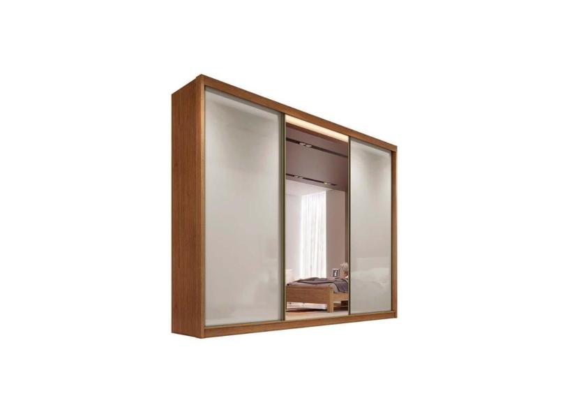 Guarda Roupa 3 Portas de Correr e (1 c/ Espelho) 8 Gavetas Toulon/Sonetto Plus Cumaru/Fendi - Novo Horizonte