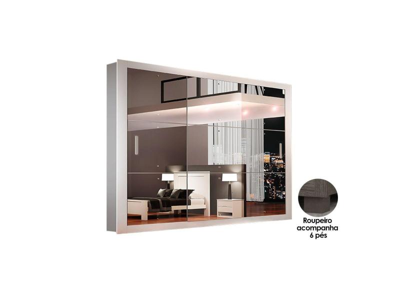 Guarda Roupa 3 Portas De Correr E 4 Gavetas C Espelho E Pes Veneza Gold Branco Rufato
