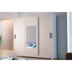 Guarda Roupa 3 Portas De Correr E 4 Gavetas C Espelho E Pes Veneza Premium Branco Rufato