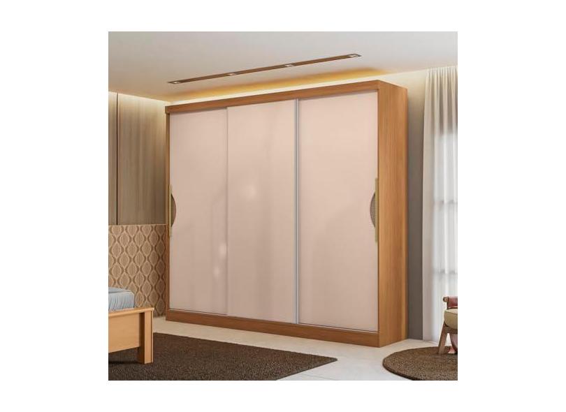 Guarda-Roupa 3 Portas de Correr e 4 Gavetas Canela/Macadâmia