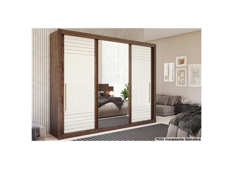 Guarda Roupa 3 Portas De Correr E 6 Gavetas C- Espelho Vitória Cacau-off White - Panan