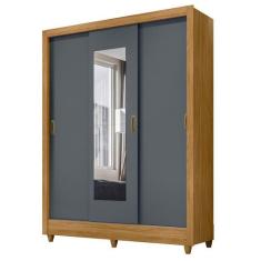 Guarda Roupa 3 Portas Deslizantes com Espelho Bolívia Freijó Cinza 981031 Moval