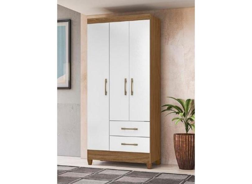 Guarda roupa 3 portas e 2 gavetas Lima nat/branco