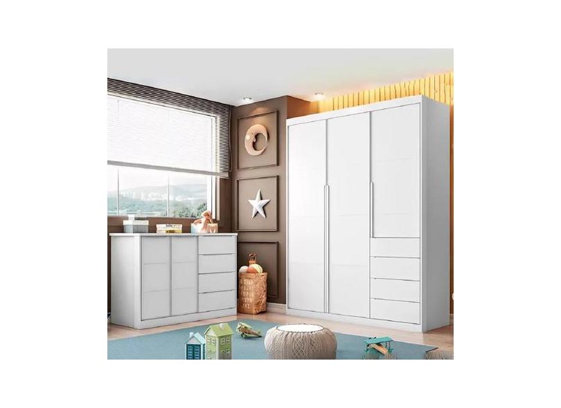 Guarda-Roupa 3 Portas E Cômoda 4 Gavetas Com Corrediças Telescópicas 1