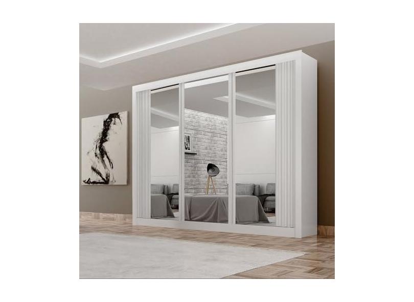 O menor preço encontrado no Brasil para Guarda-roupa 3 Portas Milano com Espelho na Porta Central e Portas Ripadas Branco atualmente é R$ 1.523,79.