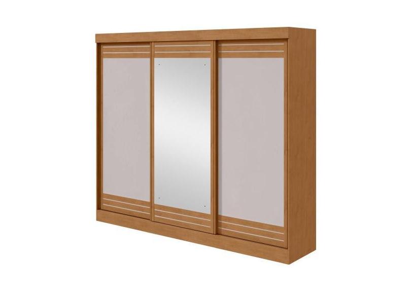 Guarda Roupa 3 Portas Nice Com Espelho Sem Pés Amêndoa E Off - Lopas