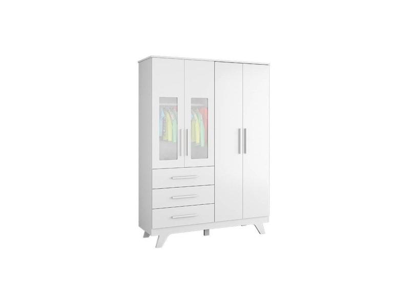 Guarda Roupa 3 Portas Retrô c/ 4 Portas e 4 Gavetas Branco - Peroba