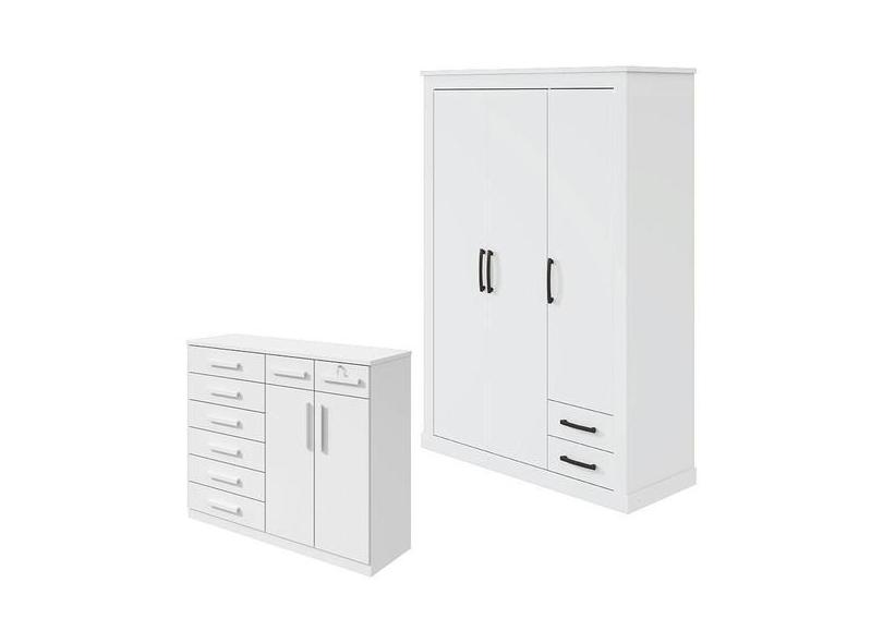 Guarda Roupa 3 Portas Rustic E Cômoda Toronto Branco Brilho - Lopas -