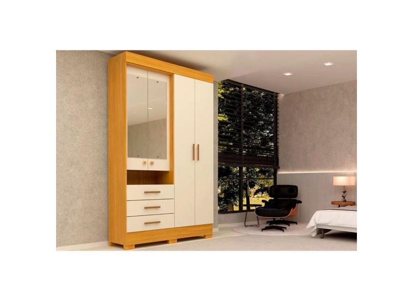 Guarda Roupa 4 Portas (2 c/ Espelho) e 3 Gavetas Débora Nature/Off White - acp