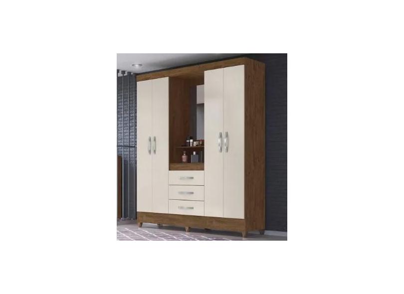 Guarda Roupa 4 Portas, 3 Gavetas; 1,65 m Com Espelho Freijo / Off White Moval Capri