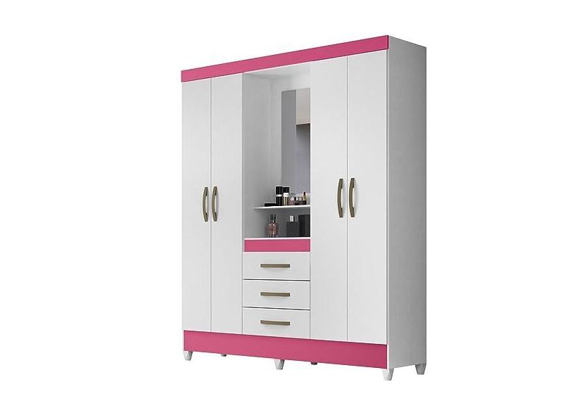 Guarda Roupa 4 Portas Com Espelho 8314 Branco Rosa Moval