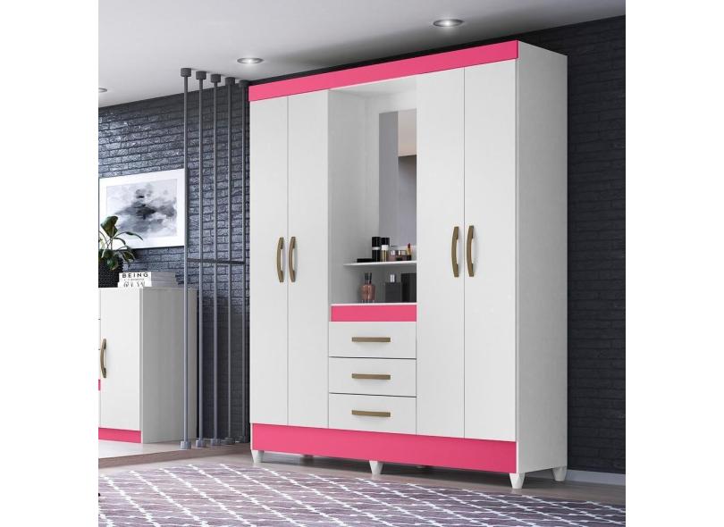 Guarda Roupa 4 Portas com Espelho Capri Branco Rosa 831442 Moval