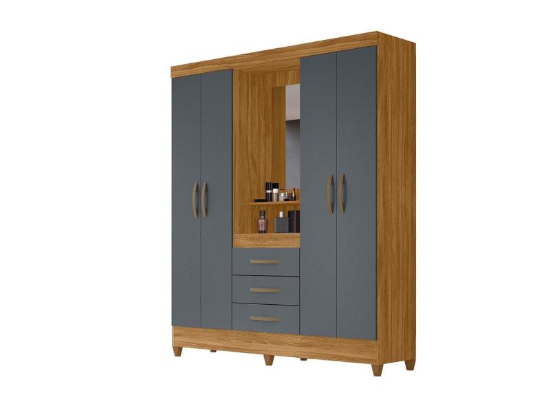 Guarda Roupa 4 Portas com Espelho Capri Freijó Cinza 831031 Moval
