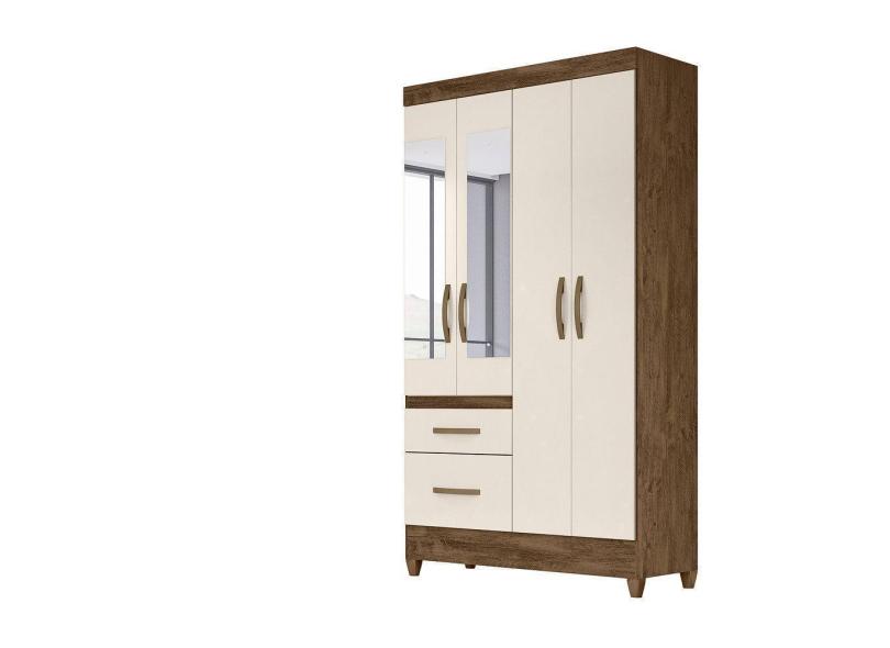Guarda Roupa 4 Portas Com Espelho Madri Castanho Off White