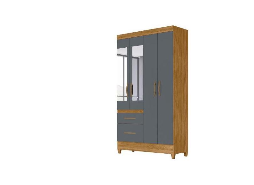 Guarda Roupa 4 Portas Com Espelho Madri Freijó Cinza 852031 Moval