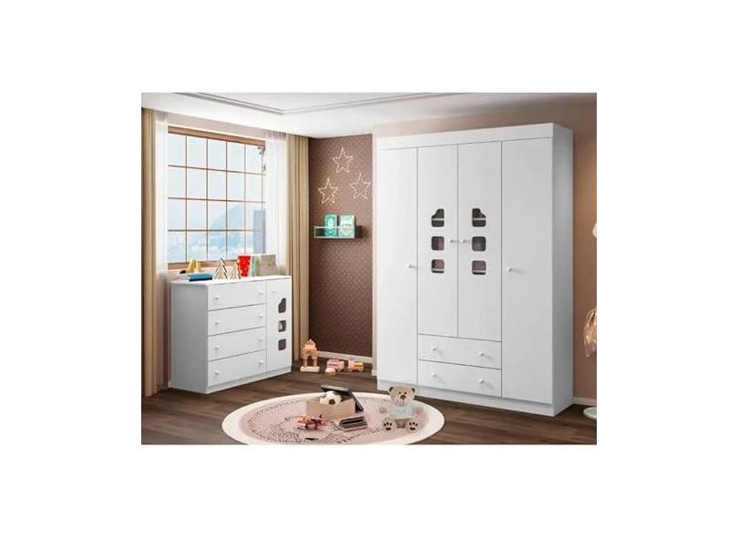 O menor preço encontrado no Brasil para Guarda-Roupa 4 Portas + Cômoda 4 Gavetas Ana Livia - Phoenix Baby - Branco atualmente é R$ 1.117,14.