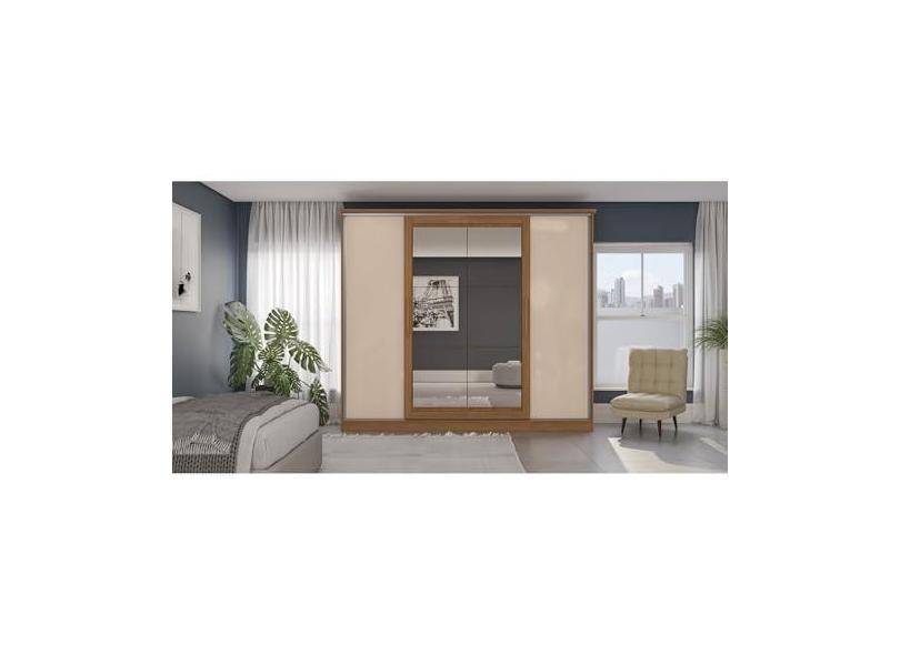 Guarda-roupa 4 Portas de Correr e 4 Gavetas Canela/macadâmia